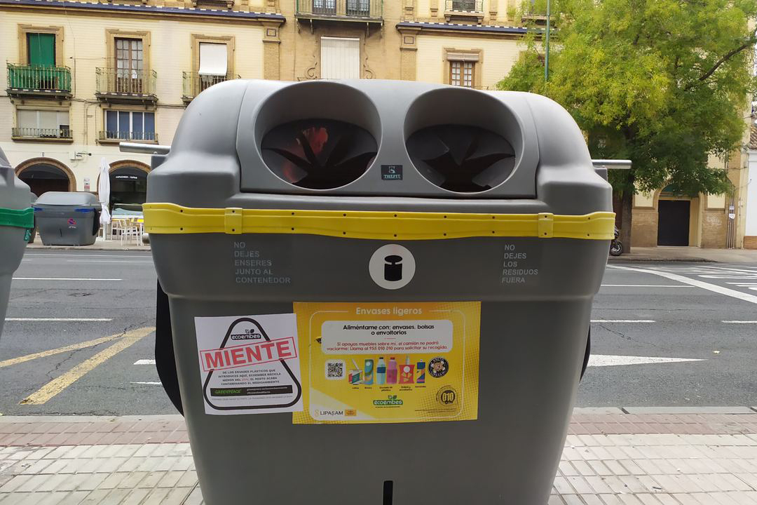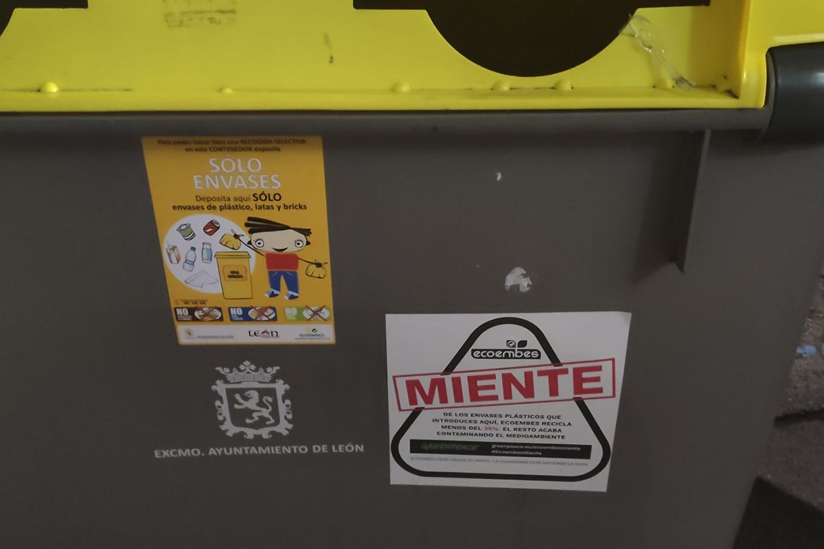 Durante toda esta semana, los contenedores de envases de más de 100 localidades de todo el estado se han visto inundados con la mención a las mentiras de Ecoembes.
